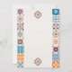 This Mexican Talavera Colorful Floral Fiesta Spanish Wedding Invitation design features vibrant, symmetrical borders inspired by traditional Talavera patterns, with intricate geometric motifs running down both sides. The color palette incorporates classic Talavera hues like cobalt blue, orange, and turquoise, echoing the ceramic artistry of Puebla, Mexico. The central space is framed by colorful tile designs, providing a striking yet balanced backdrop, perfect for a Mexican-themed celebration.