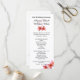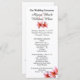 Flores rosa de plumería en altos programas de bodas blancas. Los programas de ceremonias en blanco y negro, asequibles, están decorados con flores de plumería hawaianas.