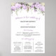 Combine su letrero de bienvenida de boda y programa de boda en este diseño. Elegantes flores de rosa púrpura anidadas en follaje verde crean una hermosa frontera superior. Todo el texto es editable para que pueda describir su ceremonia de boda única. También puede cambiar la fuente, el tamaño y el color.