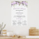 Combine su letrero de bienvenida de boda y programa de boda en este diseño. Elegantes flores de rosa morada enclavadas en follaje verde crean una hermosa frontera superior. Todo el texto es editable para que pueda describir su ceremonia de boda única. También puede cambiar la fuente, el tamaño y el color.