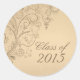 Este pegatina redondeado de graduación tiene un bonito diseño de marrón de moda con muchas flores extravagantes en el lado izquierdo. En segundo plano, el diseño es bastante oscuro y desgastado. A la derecha, puedes fácilmente personalizar el año de graduación.