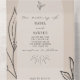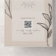 Tan arco con texto negro y línea botánica de arte. Rsvp presenta código qr.