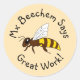 Una abeja de miel personalizado de rayas sobre un fondo de bronceado. El texto dice "¡Mx Beechem dice gran trabajo!" y se puede cambiar por un nombre/mensaje personalizado. Ideal para los profesores como recompensa para los estudiantes.