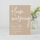 Hágale saber a sus huéspedes lo emocionados que están por su nuevo hogar con esta elegante y moderna invitación a la casa. Este diseño pulido presenta una paleta de color tostado neutro, creando un aspecto atemporal perfecto para cualquier ocasión. Invite a su familia y amigos a que se unan a usted y haga una casa especial para recordar.