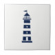 Plantilla azul del faro en la baldosa cerámica blanca. Decoración perfecta para cada cuarto de baño náutico o costero, cocina. Para cada uno que ama estilo costero, náutico, de Hamptons, de Nueva Inglaterra y de Nantucket.