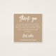 Gracias por tu paquete de compra insertar en bronceado con fuentes blancas y un borde blanco. Gracias y mejores deseos en un guión encantador. Añade tu código de descuento al otro lado junto con una imagen promocional.