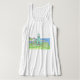 Faro imaginario de mano dibujado en la parte superior del tanque femenino; con vida de playa en la parte trasera