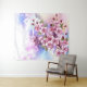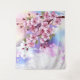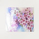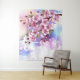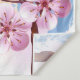 Dibujado artísticamente, rama de rosa, flores de cerezo sobre fondo pintoresco, texturizado, pintado con pintura blanca, rosa y azul. Pink Sakura