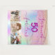 Para una fiesta de cumpleaños número 50. Un collage de 3 de tus fotos de ella misma, amigos, familiares, intereses o mascotas. Un fondo de color holográfico arcoíris en tonos púrpura, rosa, dorado rosado y verde menta. Decorado con gotas de purpurina falsa y la palabra: Fabulosa. Personaliza y agrega su nombre y edad 50. El nombre está escrito con un estilo de letra a mano de moda. Texto de color púrpura. ¡Perfecto para una fiesta sorpresa! Utilízalo como pancarta de bienvenida, decoración de pared o como fondo para fotomatón.