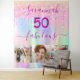 Para una fiesta de cumpleaños número 50. Un collage de 3 de tus fotos de ella misma amigos, familia, interés o mascotas. Un arcoiris, color holográfico de fondo en color morado, rosa, oro rosa y verde menta. Decorada con tonterías de purpurina y la palabra: Fabuloso. Personalice y añada su nombre y edad a los 50 años. El nombre está escrito con un guión de estilo moderno con letras a mano. Texto morado. ¡Perfecto para un fiesta sorpresa! Usar como cartel de bienvenida, decoración de pared o como telón de fondo de una cabina de fotos.