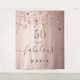 Una tapicería de 50 cumpleaños trendy y glamurosa. Un fondo color rosa dorado adornado con estrellas que gotean rosa dorado y rosa. Con el texto: 50 y fabuloso. Personaliza y añade un nombre. Texto de color marrón. La palabra Fabuloso está escrita con un estilo de letra manuscrita moderna con florituras.