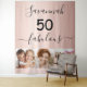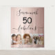 Para una fiesta sorpresa de cumpleaños número 50. Un collage de 3 de tus fotos de ella, amigos, familiares, intereses o mascotas. Un fondo femenino y delicado de color rosa dorado con gradiente. Personaliza y añade su nombre y edad 50. El texto: Fabuloso está escrito con un estilo de letra manuscrita de moda con florituras. Texto negro.