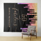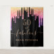 Una alfombra de cumpleaños 50 glamurosa y de moda. Un fondo negro clásico decorado con gotas de brillo falso de colores, aspecto de pintura goteante en púrpura, rosa y dorado. Con el texto: 50 y fabuloso. Personaliza y añade un nombre. Texto de color dorado. La palabra Fabuloso está escrita con un estilo de letra manuscrita moderna con florituras. Perfecto como letrero de bienvenida, decoración de pared o fondo para fotos.