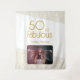 50 y fabuloso brillo dorado foto telón de fondo para 50 cumpleaños. Moderno telón de fondo para cumpleaños con tipografía trendy y puntos de brillo dorado falso. El diseño tiene una foto personalizada y nombre. Crea un tapiz personalizado para su 50 cumpleaños.