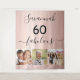 Para una fiesta sorpresa de cumpleaños número 60. Un collage de 3 de tus fotos de ella, amigos, familiares, intereses o mascotas. Un elegante fondo femenino y femenino rosa dorado con gradiente de color rosa. Personaliza y agrega su nombre y edad 60. El texto: Fabuloso está escrito con un estilo de letra manuscrita de moda con florituras. Texto negro.