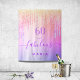 Una alfombra de 60 cumpleaños moderna y glamurosa. Un fondo de colores arcoíris en violeta, púrpura, rosa y dorado decorado con gotas de brillo falso, aspecto de pintura goteante. Con el texto: 60 y fabuloso. Personaliza y añade un nombre. Texto de color púrpura. La palabra Fabuloso está escrita con un estilo de letra manuscrita moderna con florituras.