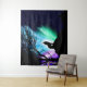 El Aurora Boreal. Un lobo aullando en el silencio de la noche. La escena es a la vez dramática y hermosa, lo que la convierte en una obra de arte mágica.