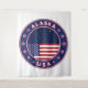Insignia de Alaska con bandera de Alaska y bandera de los colores de Estados Unidos, forma redondeada. Emblema de Alaska. Sello de Alaska. Colección de Estados Unidos.