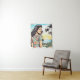 Una invitación maravillosa, con un chica sonriente, para entrar en una naturaleza soñadora, colorida y luminosa. Una ventana en un paisaje maravilloso.