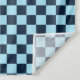 A blue and black checkerboard pattern with evenly spaced squares. The repetitive design creates a sense of symmetry and optical illusion.