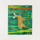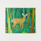 Tapiz en un ilustracion estilizado de un bonito y manchado de flores en un marco de cuento de hadas, rodeado de árboles y plantas, en tonos marrones y verdes