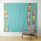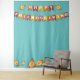 Celebra este día de Acción de Gracias con un Friendsgiving con algunos de tus amigos favoritos. Crea una cabina de fotos en tu hogar para agregar algunas risas divertidas a tu celebración de Happy Friendsgiving. El diseño presenta una pancarta festiva naranja, dorada amarillenta y rojo-anaranjada con las palabras "Happy Friendsgiving". También se incluyen en el diseño algunas hojas de otoño. Fondo azul. Diviértete parándote frente a este accesorio de cabina de fotos o fondo de fotos y toma fotos selfie o fotos grupales.