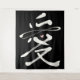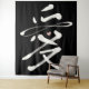 Tapiz de arte de caligrafía china de marfil con tinta 'Ai' en negro con corazón rosa y símbolo de infinito de Amor Eterno.