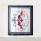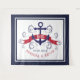 Ancla de barco náutico azul marino y rojo oscuro y espirales azules elegantes. Estandarte rojo oscuro para monograma de boda personalizado.