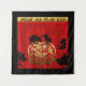 En un cuadrado hay 5 ratas negras, dos encaramadas sobre una forma dorada dentro de la cual está el sexto ratón con ideograma. Detrás de la escena hay un fondo rojo en el que las letras decorativas y ornamentadas forman las palabras: AÑO RAT. Diseño en tapiz cuadrado. Perfecto para el Año Nuevo Chino de la Rata o cumpleaños (personas nacidas en Año Rata). — "La Rata (子) es uno de los ciclos de 12 años de animales que aparecen en el zodiaco chino relacionado con el calendario chino. El Año de la Rata está asociado con el símbolo de la Subdivisión Terrestre 子. El año de la Rata es el año bisiesto. Se puede decir que las personas nacidas dentro de estos límites de fechas nacieron en el "Año de la Rata", aunque también llevan el siguiente signo elemental: 5 de febrero de 1924 - 23 de enero de 1925 = Rata de la madera, 24 de enero de 1936 - 10 de febrero de 1937 = Rata de fuego, 194 - 2 8 de enero de 1949 = Rata de la Tierra, 28 de enero de 1960 - 14 de febrero de 1961 = Rata Metalizado, 15 de febrero de 1972 - 2 de febrero de 1973 = Rata del Agua, 2 de febrero de 1984 - 19 de febrero de 1985 1996 - 6 de febrero de 1997 = Tasa de incendio, 7 de febrero de 2008 - 25 de enero de 2009 = Tasa de la Tierra, 25 de enero de 2020 - 11 de febrero de 2021 = Rata Metalizado, 11 de febrero de 2032 - 3 Rata de agua". Wikipedia