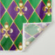 joyas, fondo del Mardi Gras de rhombus violeta y verde, lirios dorados decorados.