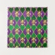 joyas, fondo del Mardi Gras de rhombus violeta y verde, lirios dorados decorados.