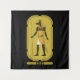 Tapiz con Anubis Dios de la momificación en el diseño de cartouche dorado. Esta deidad egipcia de cabeza chacal también era conocida como Inpu, Inpw, Jnpw, o Anpu en el Antiguo Egipto.