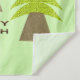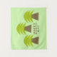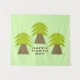 Este impresionante tapiz presenta una imagen gráfica de tres árboles que se parecen a palmeras con frondas verdes y frondosas y un robusto tronco de árbol marrón. Hay un mensaje en texto marrón para parecerse a la tierra bajo los árboles. El mensaje dice Feliz Día de la Tierra.