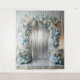 Bonito arco de globo azul pastel con escena majestuosa, tapicería colgante, elegante telón de fondo fotos de Aniversario de Plata o Oro, fotos Bodas o cualquier evento u ocasión