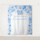 Esta elegante tapiz para Quinceañera presenta un arco de globos brillantes en varios tonos de azul, plata y blanco. Las serpentinas y el confeti que caen en azul y blanco completan el ambiente de la fiesta. Agrega tu nombre para personalizar. Fácil de personalizar haciendo clic en "Personalizar". Se puede utilizar como pancarta de bienvenida, decoración de pared para la fiesta o como fondo para el fotomatón.