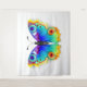 Arcoiris, realista, de dibujo artístico, colores brillantes mariposa pavo real con alas detalladas texturizadas sobre fondo blanco. Mariposa arcoiris.
