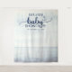 El diseño presenta un fondo de acuarela de océano y baby shower en un divertido diseño tipográfico.