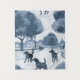 Perros caminando bajo grandes árboles en un entorno de parque.
