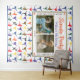 Artes marciales de Japón para niños de karate con modernas y coloridas siluetas de karate y 2 fotos para personalizar para el niño de cumpleaños. Haz la mejor decoración de fiesta de karate con este telón de fondo personalizado.