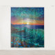 Descanse la magia del océano al atardecer con este surrealista detalle, con una impresionante mezcla de tonos azules, iridescencia y colores opal y jade para un toque etéreo.
