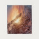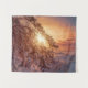 Vista de la puesta de sol sobre el paisaje invernal con el mar y cubierto de pinos nevados contra la dramática luz nocturna. Costa de nieve