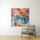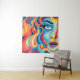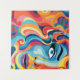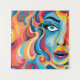 Los vibrantes remolinos azules, naranjas y amarillos crean la forma abstracta de la cara de una mujer en un estilo moderno y caprichoso. Las líneas audaces y los colores brillantes dan la impresión de movimiento y fluidez mientras evocan un sentido de arte y emoción.