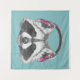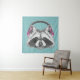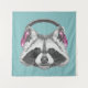 Este diseño presenta un mono de mapache con auriculares rosas.