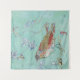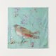 Ave Aqua por el Día de Kellie. Pequeño pájaro cantor creado con texturas variables para agregar profundidad. El fondo es un hermoso verde azulado con flores azules pequeñas.| SID21474