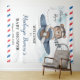 Personaliza esta linda alfombra de bienvenida de estilo postal de ducha de bebé con tus detalles de manera fácil y rápida. Simplemente haz clic en el botón Editar usando herramientas de diseño para editar aún más el texto, la redacción, el estilo de fuente, el tamaño de fuente, el color de fuente y agregar o eliminar texto. Con un oso lindo montando un avión azul polvoriento con un matasellos de "es un niño". ¡Hay artículos que coinciden disponibles en la tienda! (c) The Happy Cat Studio