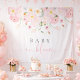 Celebrate the joyous arrival of a little girl with our "Baby in Bloom" baby shower backdrop tapestry.