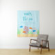 Ducha de bebé de vida marina con naranja y peces azules jugando entre un arrecife de coral y algas marinas, en medio de burbujas oceánicas.