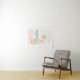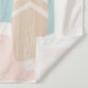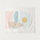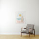 Esta tapicería colgante de surf moderna y linda cuenta con una tabla de surf de madera en la playa con conchas dispersas.
