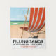 Afiche de viajes al mar de estilo vintage de la bahía de Pilling Sands Morecambe y el tren de Lancashire.