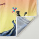 En esta escena encantadora y de ensueño, una joven bailarina de ballet se levanta descalza bajo un cielo iluminado por el sol, con los ojos puestos en un gol malicioso: un par de pantuflas de ballet colgando deslumbrantemente de una rama de árbol alto. Encaramado cerca, un pájaro quisquilloso —claramente el culpable— mira desde arriba, después de haber reclamado los preciados zapatos de la bailarina como su propio trofeo. Armado con un brillante ramo de globos rojos y una determinación esperanzadora, el bailarín llega al cielo en un divertido intento de recuperar lo que se tomó. Al lado de ella, un gato negro astuto traza su propia misión, aferrándose a un bulto de mariposas que revolotean como un ramo de vuelo floral, su mirada se fija en el ladrón de plumas de arriba. Surrealista pero lleno de encanto infantil, esta obra de arte captura la magia de la imaginación, el espíritu de persistencia y un toque de travesura caprichosa, contra una puesta de sol soñadora y naranja, donde incluso los sueños se atreven a flotar.